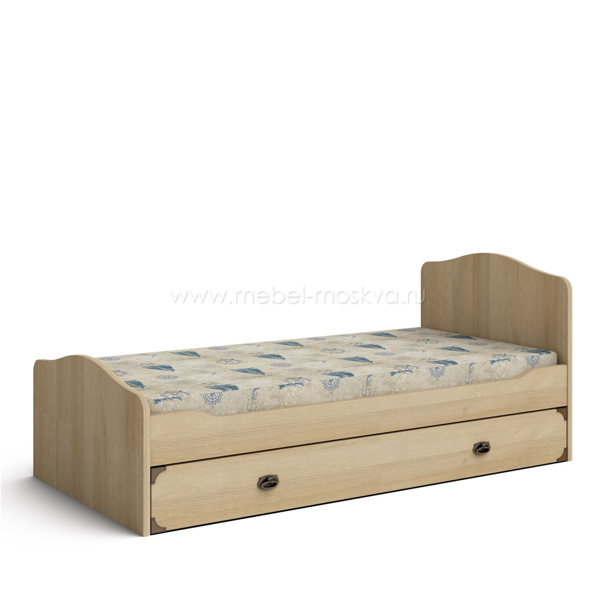 Подростковая кровать с ящиком для белья и механизмом подъёма основания выполнена в светлом естественном декоре дуб Ривьера.