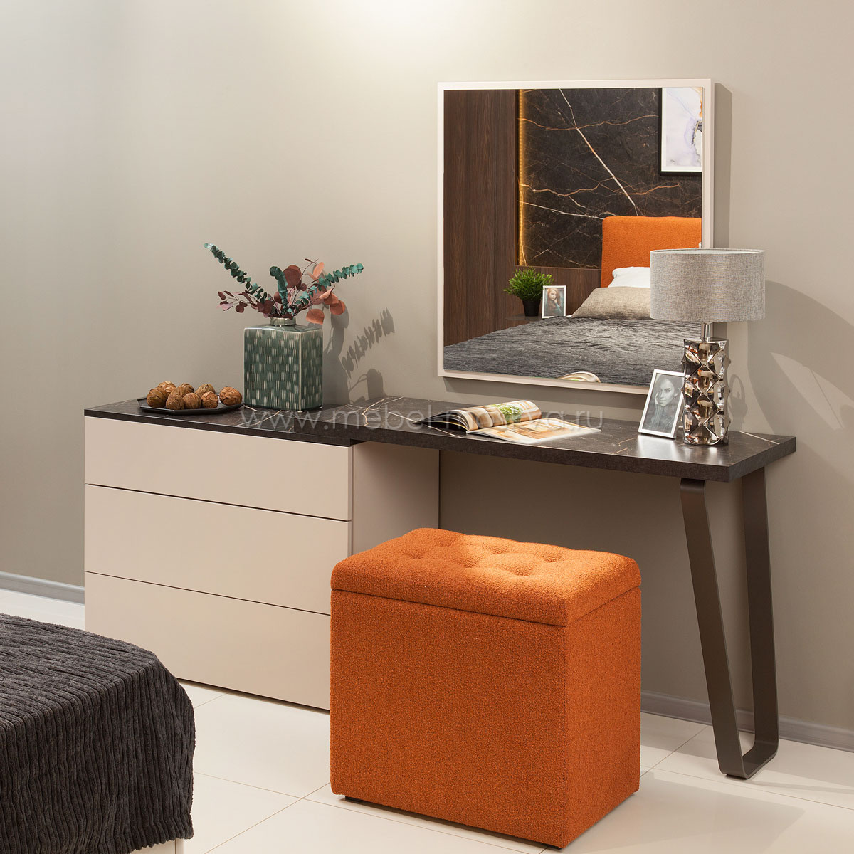 Туалетный стол с комодом и зеркалом Сарино (Кашемир серый/Файерстоун)