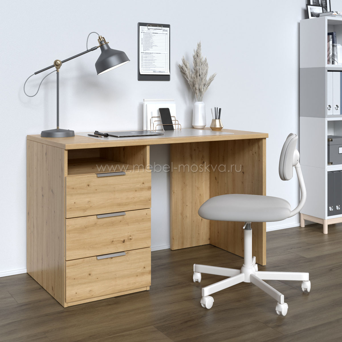 Стол поможет организовать удобную рабочую зону в молодежной или кабинете. Изделие имеет тумбу с тремя ящиками, в которых удобно хранить канцелярские принадлежности и аксессуары.